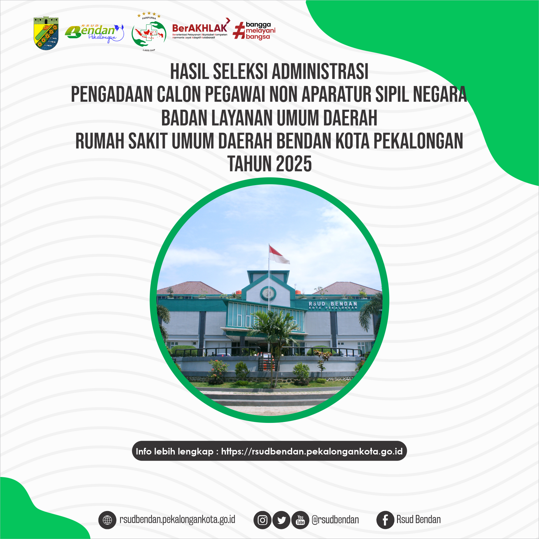 Informasi lebih lengkap unduh file disini : https://rsudbendan.pekalongankota.go.id/download/hasil-seleksi-administrasi-tahun-2025.html