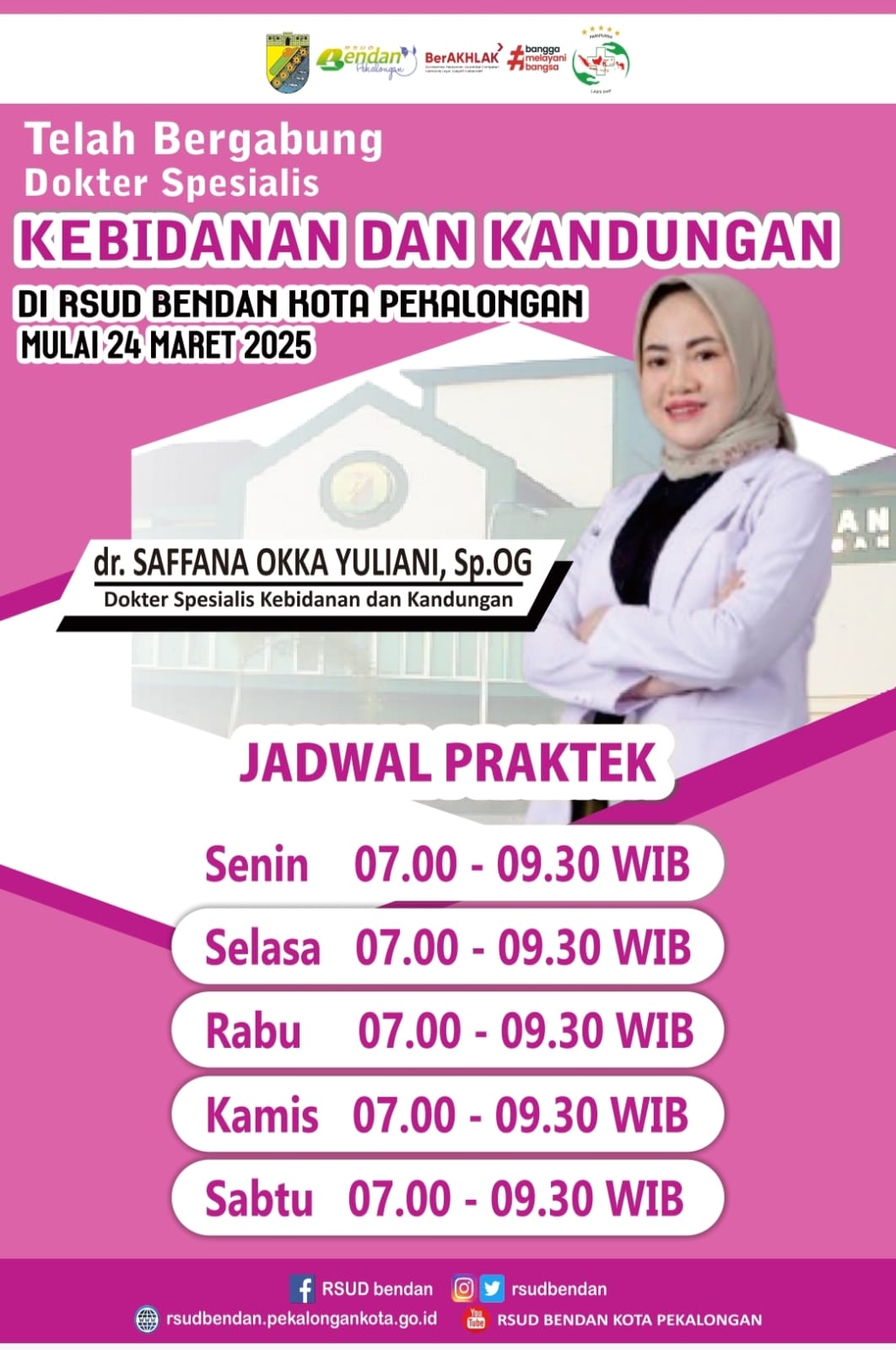 UMUM SELAMAT BERGABUNG DOKTER SPESIALIS KEDIBANAN DAN KANDUNGAN dr.SAFFANA OKKA YULIANI,Sp.OG 24 Maret 2025 [07:25:25]