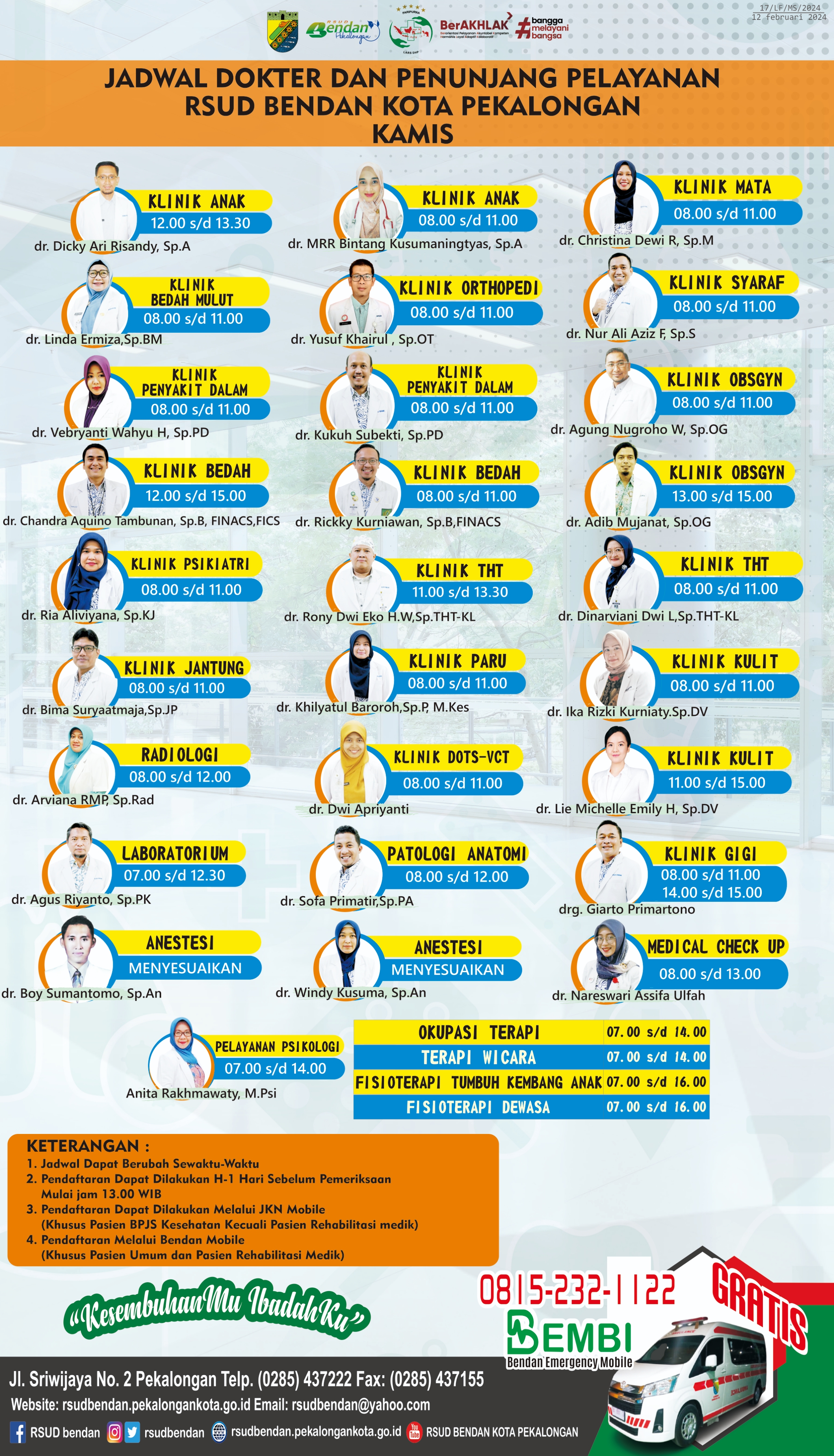 JADWAL DOKTER DAN PELAYANAN PENUNJANG RSUD BENDAN KOTA PEKALONGAN KAMIS