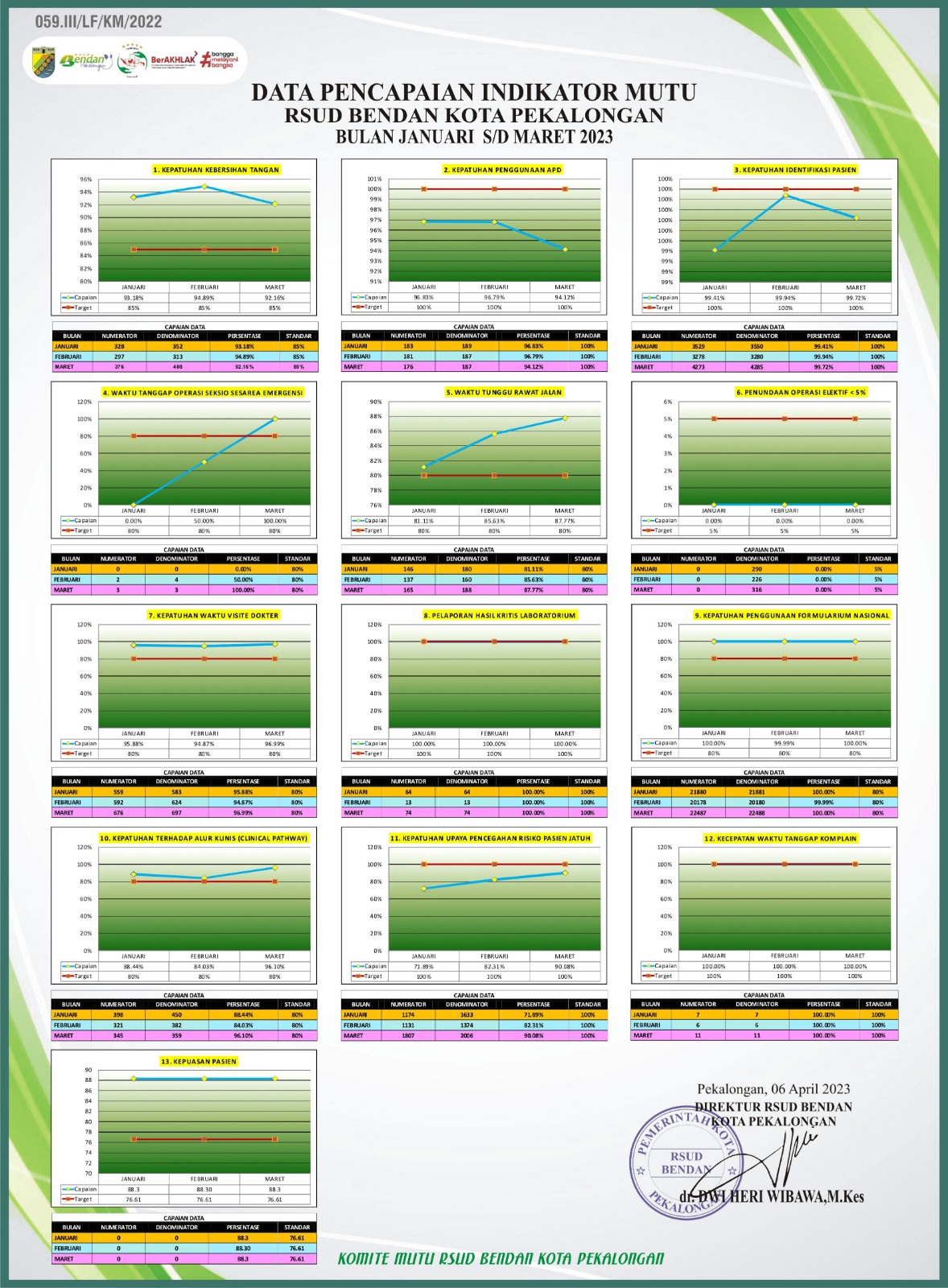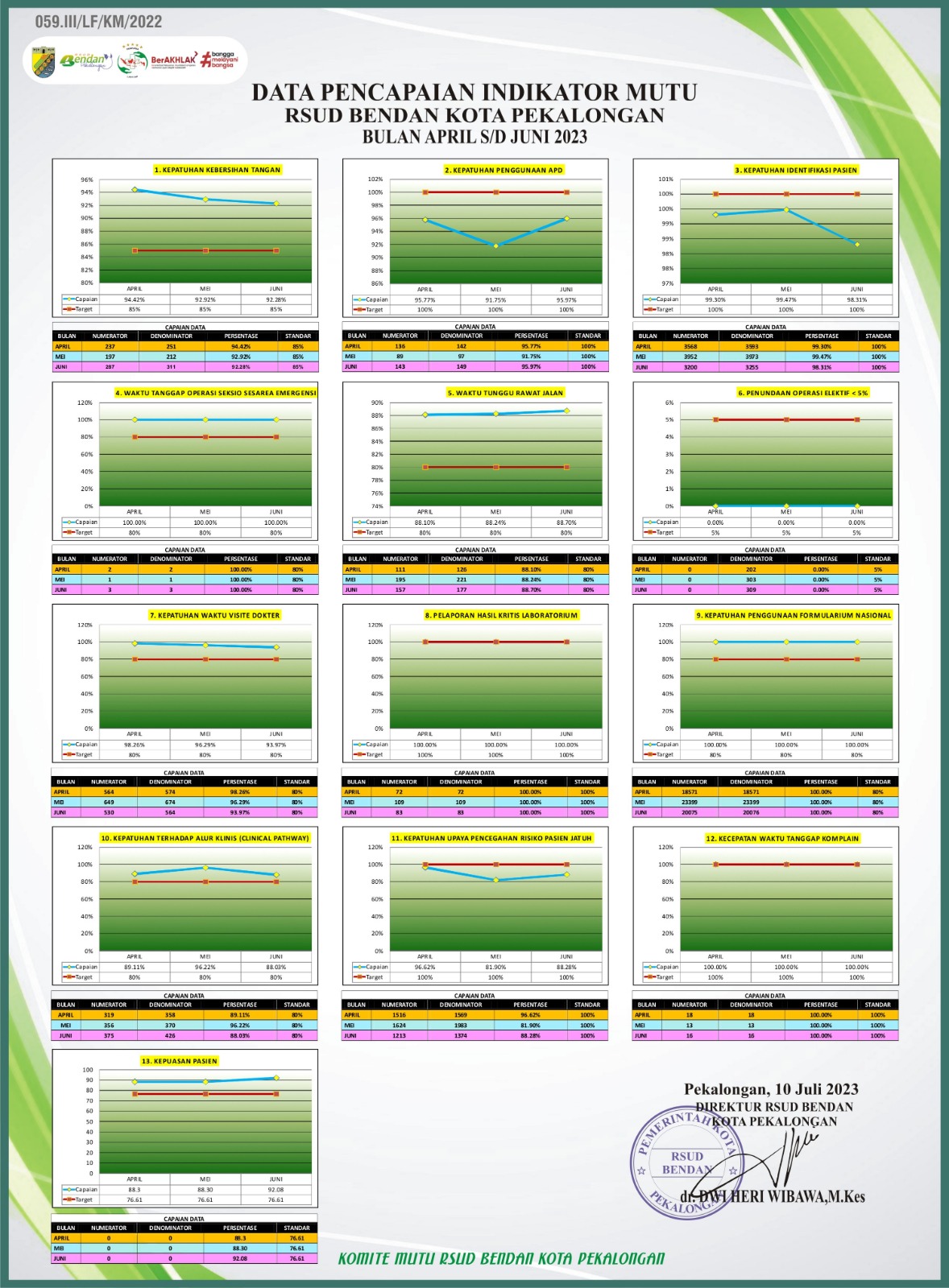 Indikator Mutu RSUD Bendan Kota Pekalongan Periode Bulan April - Juni 2023