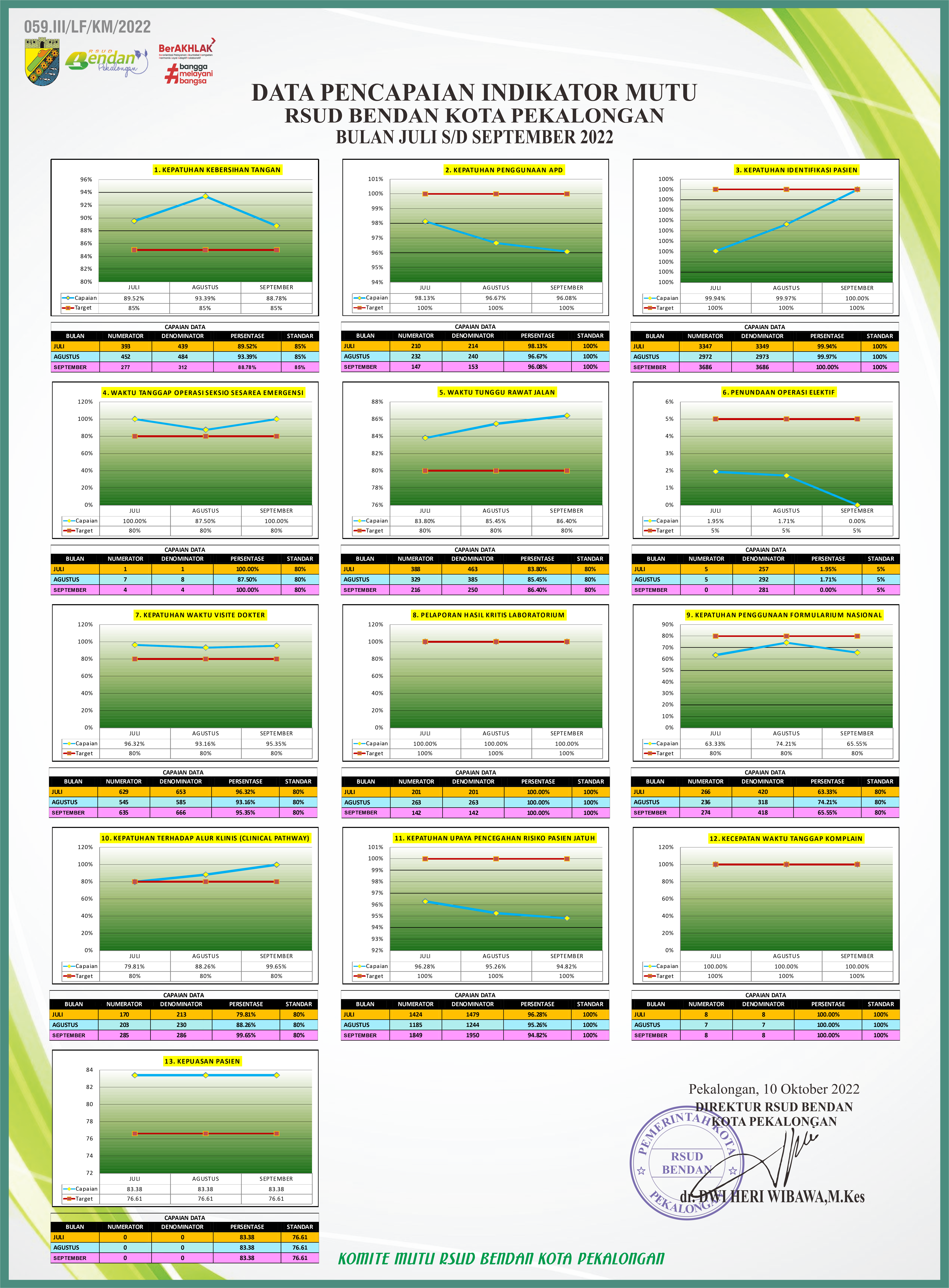 Indikator Mutu RSUD Bendan Kota Pekalongan Periode Bulan Juli - September 2022